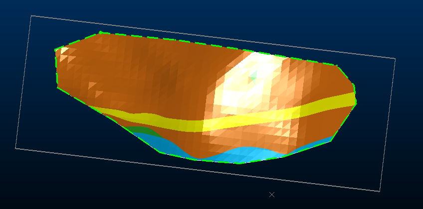 Any combination of constraint types is possible; for example, you may want to clip all data above a topography but generate a combined solid within a prototype hull cuboid, or to simply clip all data outside a delimiting perimeter, providing it also falls inside a small, partly-intersecting pit phase shell volume.