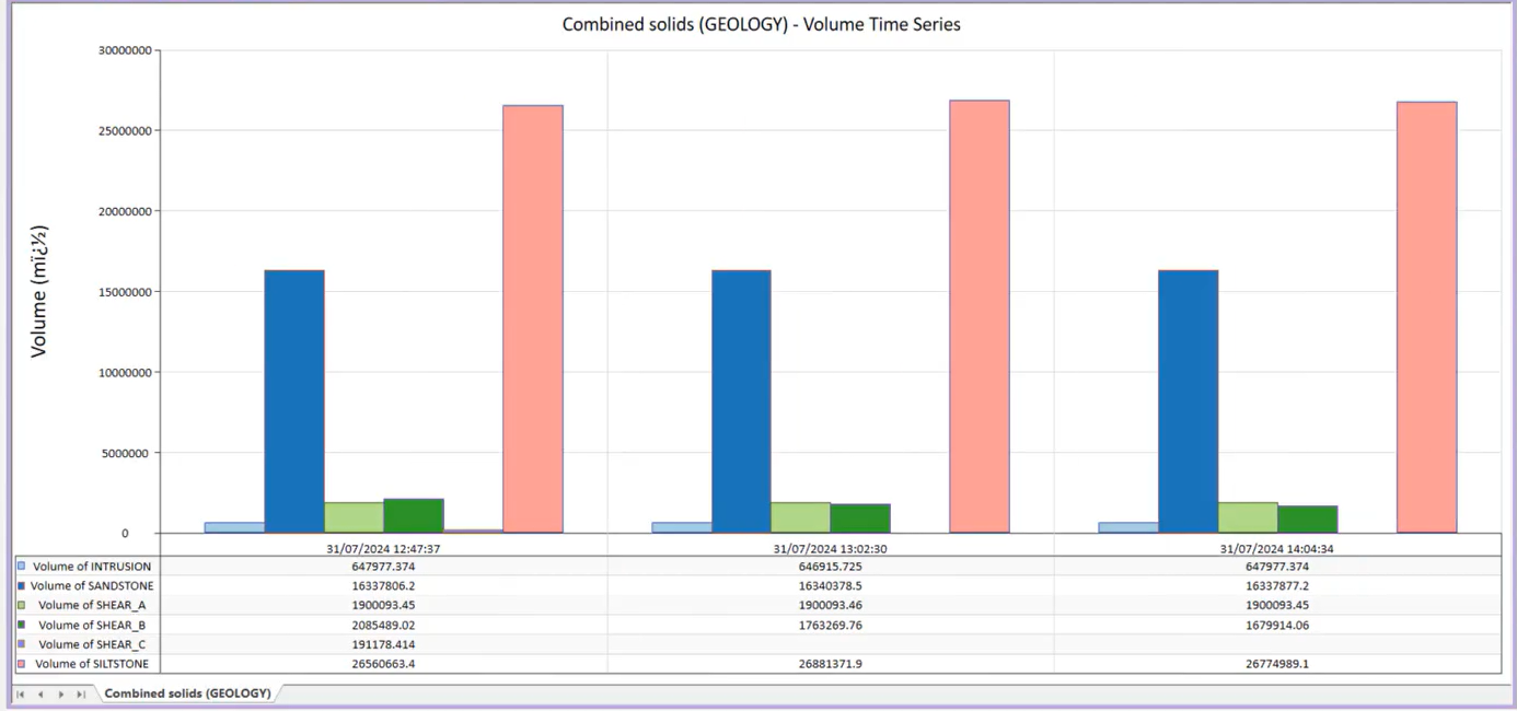 To get a clearer understanding of the impact your modelling decisions have made, each time a combined solid model is generated, volumes of key structures can be stored and visualized, showing you how your parameter decisions have affected the output volumes.