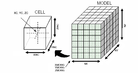 - XINC, YINC, ZINC ***: XYZ cell dimensions. If the model is not to contain any sub-cells then these three fields can be Implicit