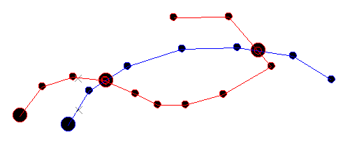 Select the string that you wish to break. In the following example, the red string is cut by the blue string - the control string: