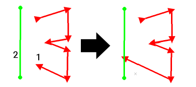 Now select a second string (left or right click) to define the end of the extension. The function will check whether the strings will actually cross-over and the first string segment is extended to the intersection point with the second.