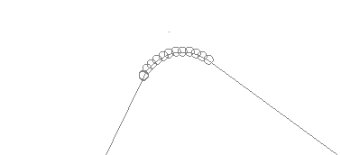 The line is modified (filleted) to create the necessary points in order to maintain the specified radial curvature. For example, the above line image, filleted to a radius of 30 creates this: