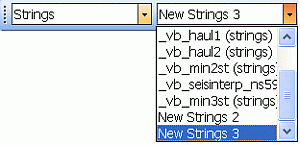 Current objects are displayed in bold text in the Loaded Data control bar. In the above image, multiple strings exist in memory (either as loaded or new objects), while only one wireframe and one block model object have been loaded. The current objects, only one of each type, are highlighted in bold.