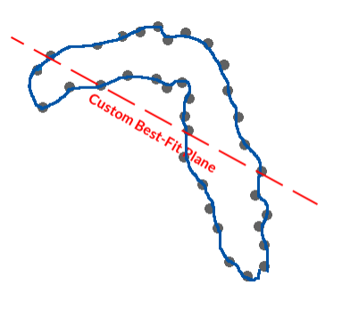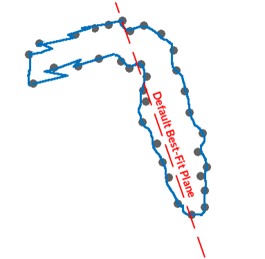 Altering the 'best-fit' plane to a bias, skewed from each branch of the shape in roughly equal amounts, allows a surface to be generated that is more reasonable.