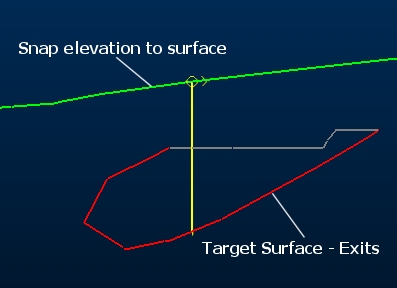 • Exits – In this case, the final intercept of the hole and surface or volume will be used to terminate the hole. This is useful for progressing a hole through a mineral-bearing structure for example, terminating the sample as it leaves the structure. For example:
