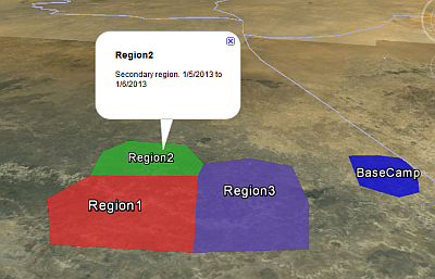The Name Field and Description Field can be used to identify individual strings in the Google Earth 3D Viewer. Click on the string to display its values, for example: