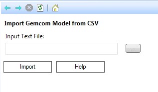 The script accepts an Input Text File (browse to select a file) containing Gemcom CSV (comma-separated-value) model data and creates the corresponding parent cell Datamine model.