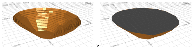Remove planar holes—if checked, the clean routine detects any area surrounded by a boundary of open edges, and triangulate the boundary to fill the hole. Any triangulations which would cause crossovers within the wireframe are discarded. This option should be used with some caution with DTMs as they have an outer boundary of open edges, the option can be used to close a DTM to make a closed solid, for example: