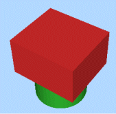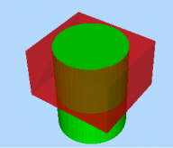 In the following example, an overlapping cube and cylinder are available for selection (as independent wireframe objects). The table further below details the output data created as a result of using the Wireframe Union command.