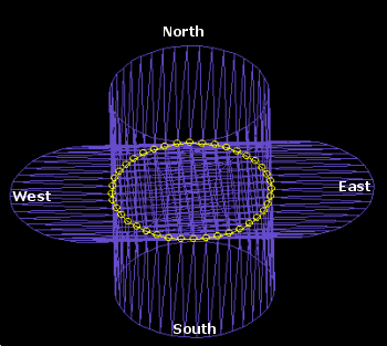 The following images describe the preset directions more graphically. The left hand image shows a closed, circular string, created on the bias between plan and east-west directions. This string has been projected in North, South, East and West directions: