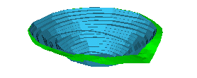 Consider the image below, showing a cutaway view of a topography (first surface) and pit bowl (second surface):
