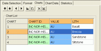 • Move Chart Up/Down: for multiple chart entries, you can use these buttons to sort the order in which charts are listed. Selecting one of the up or down arrows will move the selected item in the corresponding direction.