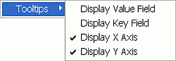 Display X Axis: show/hide the X Axis data value (shown by default). This is the X Axis defined in the Data Selection tab. The values displayed will include the lower and upper bin values for a normal scale, lower and upper untransformed values for a log scale.