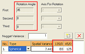 Check the Rotation Angle parameters and corresponding Dip Direction/Dip model parameters for the XYZ axes of the selected experimental variograms i.e. those selected in step 1.