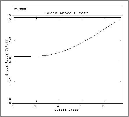 - creates output plot files (PLOT) displaying the tonnes, grade and metal above cutoff against cutoff for the total model.
