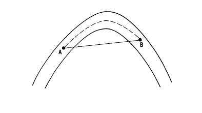 Stratigraphical distance between A and B. Calculated from unfolded coordinate system (UCS) axes. |