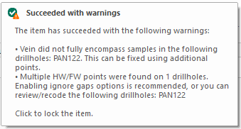The task item has been locked, so won't be updated when the workflow is run. See Process the Workflow. A lock stops the task item from being set to Waiting if any dependencies change in the workflow, for example a vein depends on drillholes, and the drillholes change. If the vein is unlocked, the vein would be set to waiting when the drillholes change. |