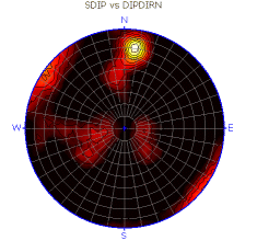 A stereonet (also known as a stereogram or hemispherical projection) is a way of representing the orientation of 3-dimensional structure data (represented by dip direction and dip) on a 2-dimensional surface. In a stereographic projection, planes and lines are drawn as they would appear if they intersected the bottom (or top) of a transparent sphere viewed from above.