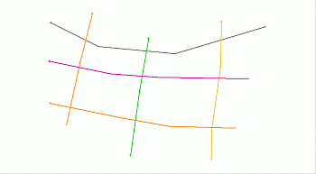 In the following example, a set of crossing strings is used to generate outlines by individually selecting enclosed areas; the resultant outlines are stored in a new New Outlines object.