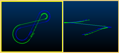 In the image below, the same original (green) string data is expanded by the same amount, but this time the original view direction is altered to be non-orthogonal to the horizontal plane on which the string was created: