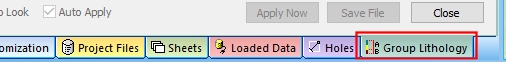 A dynamic control bar is used to host variable content. Studio creates these control bars 'on-the-fly' and can be considered a container into which a function is added. In the image above, for example, the Group Lithology managed task has been displayed. Commonly, these control bars support managed tasks in Studio products.