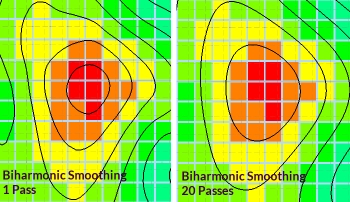 7. Similarly, there are multiple Smoothing options available for your contours (this will have no effect on the output grid model). Biharmonic applies a sensible smoothing level to most inputs and parameters e.g.: