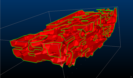 Use the Smooth Isosurfaces option to remove the effect of outlier data, or to create a less erratic output surface. Choose from Low, Medium or High levels of smoothing. Excessive smoothing can reduce wireframe volumes.