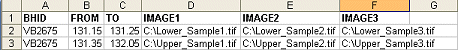 In the above example, the fields (columns) IMAGE1, IMAGE2 and IMAGE3 can be set up as log column view for a dynamic hole. Once all fields and rows have been defined, you can save your spreadsheet.