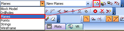 You can generate a new, empty, planes object using the Current Object toolbar. Select the [Planes] option from the drop-down menu, then click the new object icon as shown below: