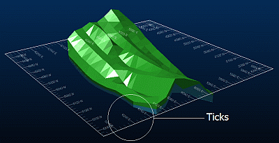 | Tick size | The default pixel size can be overridden by specifying your own setting here. The larger the value, the more the grid interval marker will encroach on the display area of the active 3D window. |