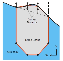 A variation on the shape refinement method allows the 4 points on the roof to be annealed with the points constrained to a vertical path, and the intermediate points between the stope corners constrained by a convex/concave distance.