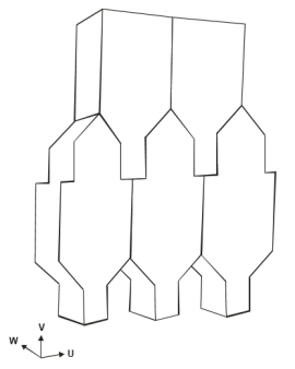 For sublevel caving an interlocking set of shapes (with more points to define the profile) is required. These are referred to as stope polygons. One or more shapes are defined as points to create a closed polygon and stope polygons are replicated within the framework volume by specifying a UV offset from the framework origin for the first shape, and a UV increment for replicating the shape across the framework, e.g.: