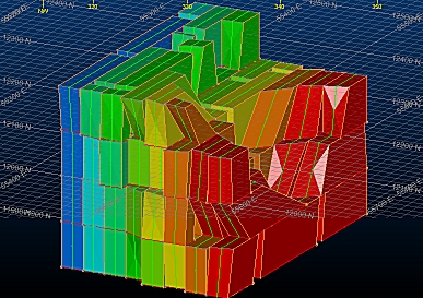 An example of output merged wireframe and string data - Mined Out Block Model(Slice Method only): if you have chosen (within the corresponding scenario) to generated a mined out model (on the Scenarios panel) you can choose to view it by selecting this check box.
