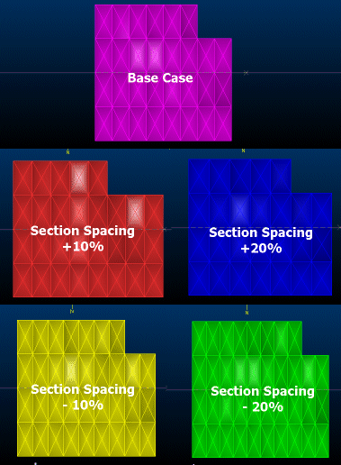 The above example optimized wireframes shown overlapping, from a North-South direction: