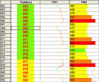 You can use this screen to amend the format of this presentation by associating colors, graph styles and alignment options. Table column values can be represented in a variety of formats, including line graphs, histograms, line traces etc.