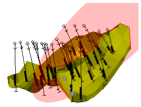 For example, in the image below, a front and back section width of 75 are specified (resulting in a section corridor of 150), and clipping is applied: