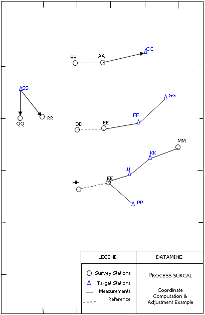 This process computes provisional and/or adjusted coordinates of all observed survey stations contained in an input file of reduced observations such as output from process SUROBS.
