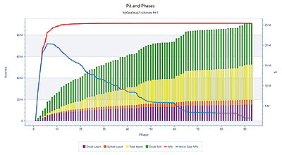 A typical Pit and Phases chart showing rock mass by ore type
