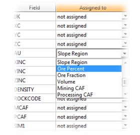 • Density, Tonnage Factor and Tonnage fields all define cell (sub-cell) mass, so only one of the three can be imported. These fields are optional; if none are present, all cells will be assigned the same default density.