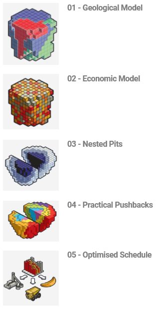 To optimize a strategic mine plan for maximum NPV requires the simultaneous resolution of two concepts that, on the face of it, are in conflict with each other, namely, the design of the mine and the schedule of that design. The tension between design and schedule creates what appears to be an unsolvable problem: when is the optimal time to mine a discrete block of ore if the time it is to be mined depends on its value - and yet the value depends on when it is to be mined? Studio NPVS uses a unique and sophisticated methodology to resolve this situation in a practical way.