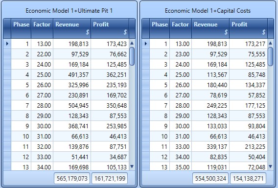 Expand each value category (Financial, Rock Mass, Volumes etc.) to reveal the values relevant to that category.