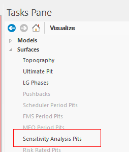 You can visualize the surfaces generated by a sensitivity analysis run using the Visualize section of the Tasks Pane:
