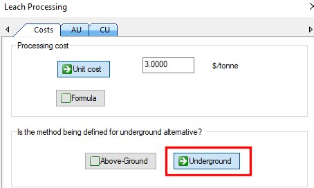 When defining settings for the economic model, you can designate a processing method as either Above-Ground or Underground.