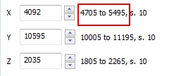 If you attempt to select a position that isn't feasible (for example, as it sits outside the ultimate pit) you are shown a warning. If using world coordinates, you are shown a valid range next to the coordinate input field. In the following example, you can enter X values between