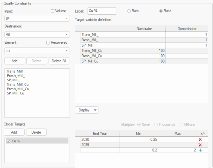 A typical Cu% target is shown below. It is defined as a Ratio target to allow using both Numerator and Denominator.