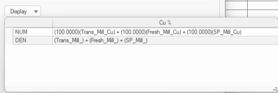 Example 2: Trans_Mill_Au variable is the contained Au mass from Trans rock type that goes to Mill.
