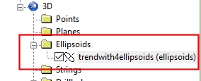 Ellipsoid data objects are used in many Studio processes where a search volume is needed, and are detected by Studio due to the presence of a number of system fields.