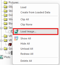 2. In the Project Data control bar, locate the Pictures folder. Right-click this and select Load Image.