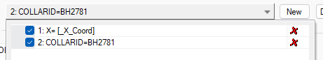 Expand the Label list to see all previously defined labels. If none have yet been set up, a default label is added that shows the BHID value for the drillhole overlay.