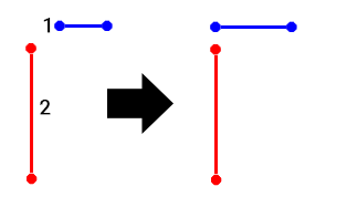 Note how the target string extends into empty space, but reaches a point at which it would intersect with the destination string if it were extended at one end.